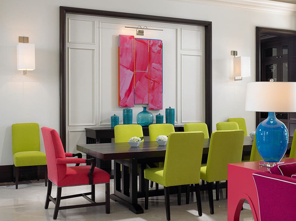 Тумбочка, комод для білизни або журнальний столик - це невеликі предмети інтер'єру, які можна легко вписати в загальну колірну схему інтер'єру. А один або два яскравих стільця біля столу зроблять обідню групу розслабленою і невимушеною.