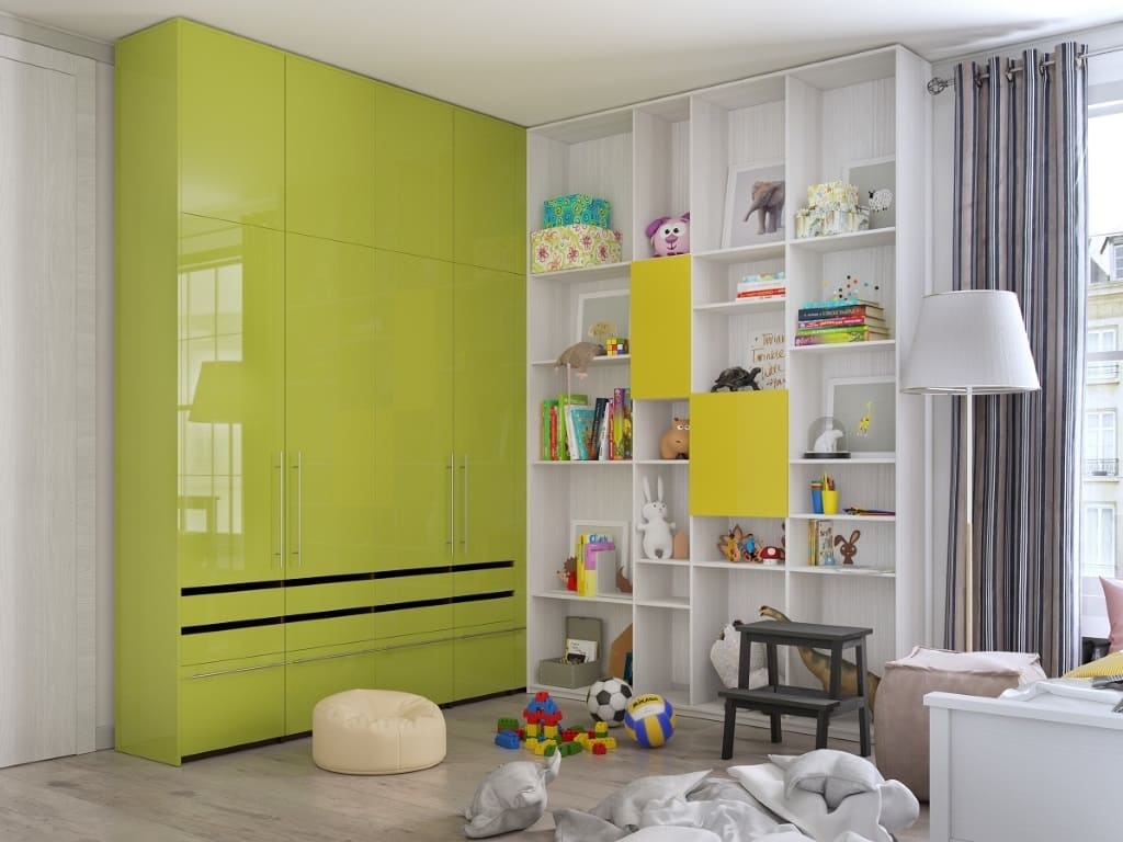 У приміщеннях, де ви проводите багато часу, краще робити стіни і прилеглі до них вбудовані меблі нейтральними. Наприклад, яскрава система зберігання на всю стіну швидко почне стомлювати. Але в передпокої або коридорі можна поставити кольорову шафу – пожвавить простір, але не буде набридати. Добре впишеться вона і в інтер'єр дитячої кімнати.