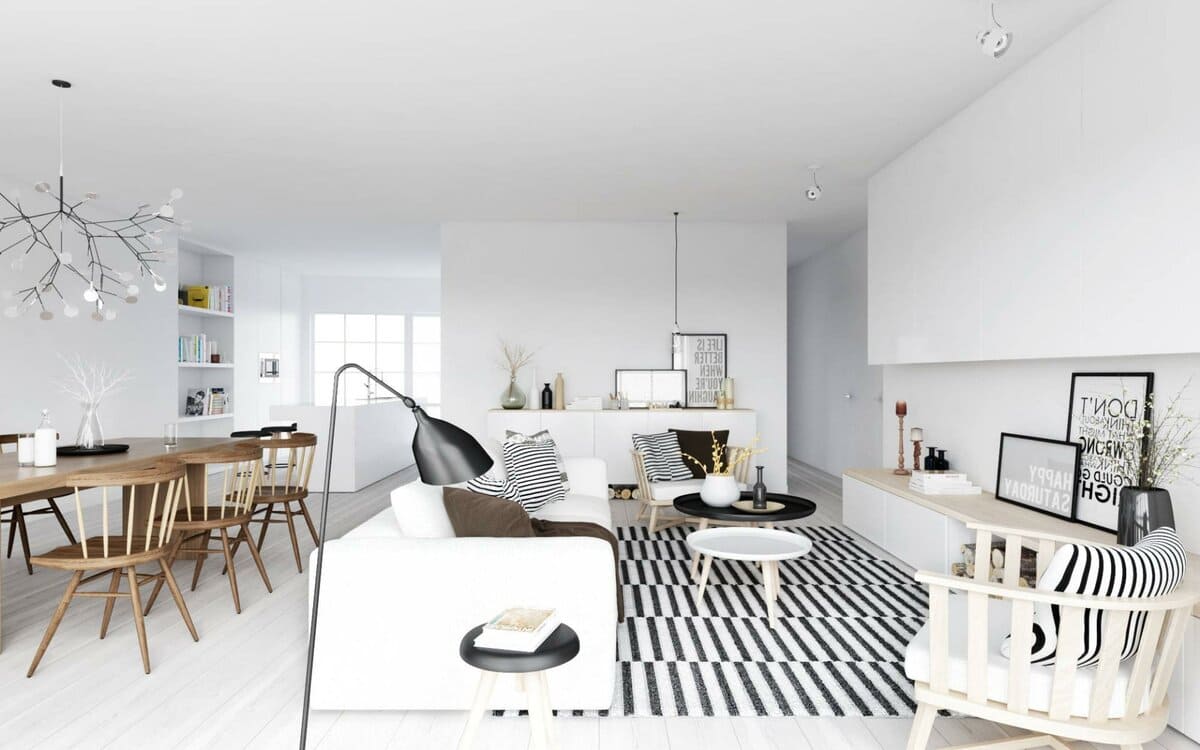 А ще білий колір універсальний – він підходить для оформлення квартир в більшості стилів. І незамінний для інтер'єрів в скандинавському та еко-стилі, бо відмінно поєднується з природними матеріалами і орнаментами.
