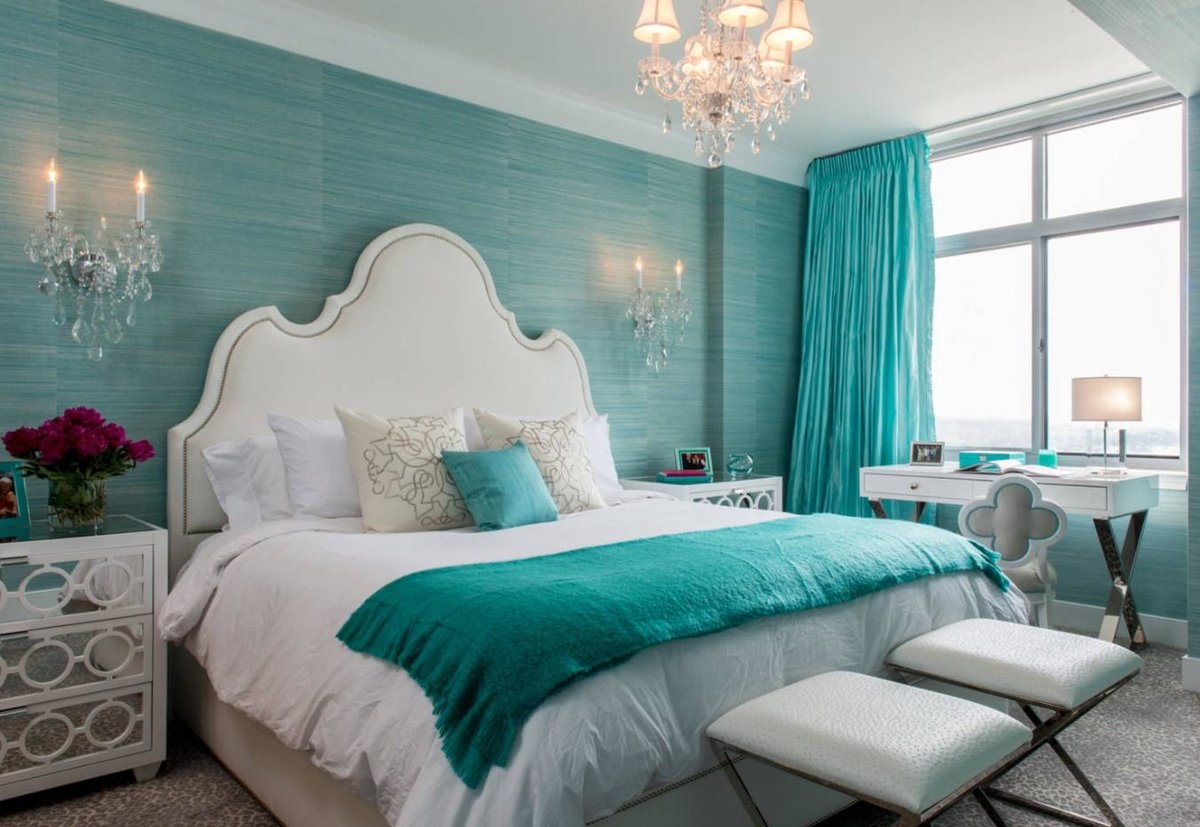 Светло-бирюзовый цвет отлично смотрится в интерьере в стиле сканди и минимализм. Более яркие насыщенные оттенки бирюзы, особенно в сочетании с золотистым декором, украсят комнату в восточной стилистике.