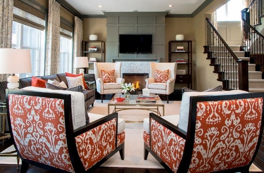 Добре, якщо орнамент повторюється на кількох елементах інтер'єру. Наприклад, узор на оббивці меблів поєднується з малюнком на вазі, світильнику або настінному панно.
