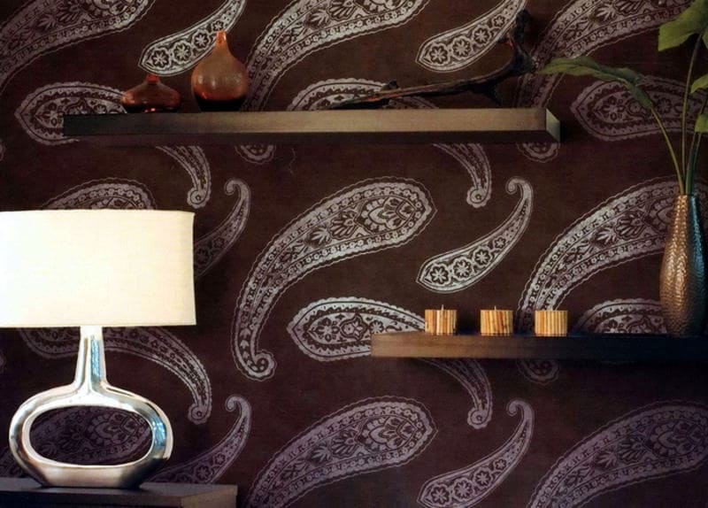 - Пейслі. Традиційний східний малюнок пейслі (турецька огірок) – ще один приклад актуального рослинного орнаменту. Візерунок сам по собі досить яскравий, тому краще акцентувати з його допомогою окремі елементи дизайну. Але пейслі нейтральних відтінків підійде і для фону.