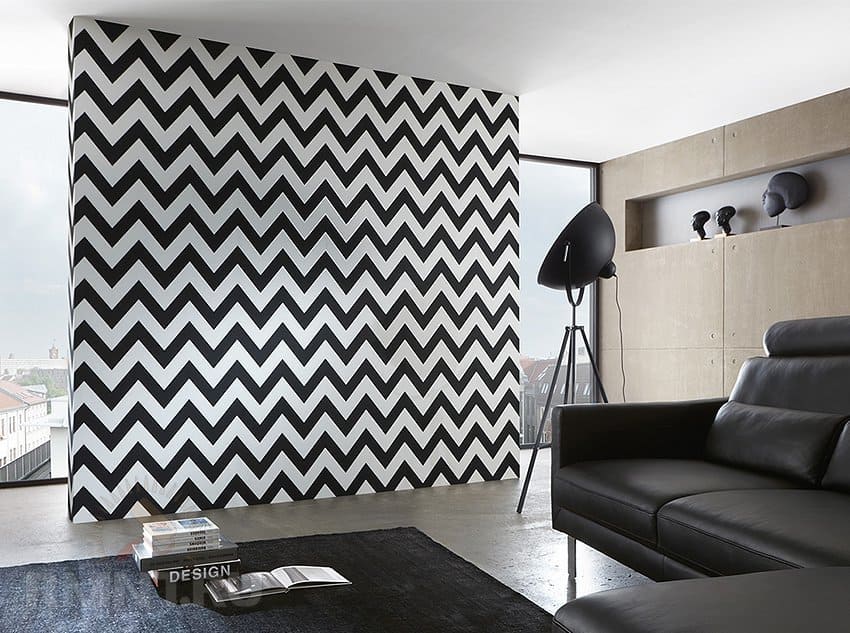 - Зиґзаґи. Ще один приклад модного геометричного орнаменту – зиґзаґи. Найкраще вони виглядають в скандинавських і сучасних інтер'єрах. Зиґзаґи нейтральних відтінків можна використовувати і на шпалерах, цей прийом добре маскує дефекти стін. Контрастний орнамент підійде для меблів, текстилю або декору.