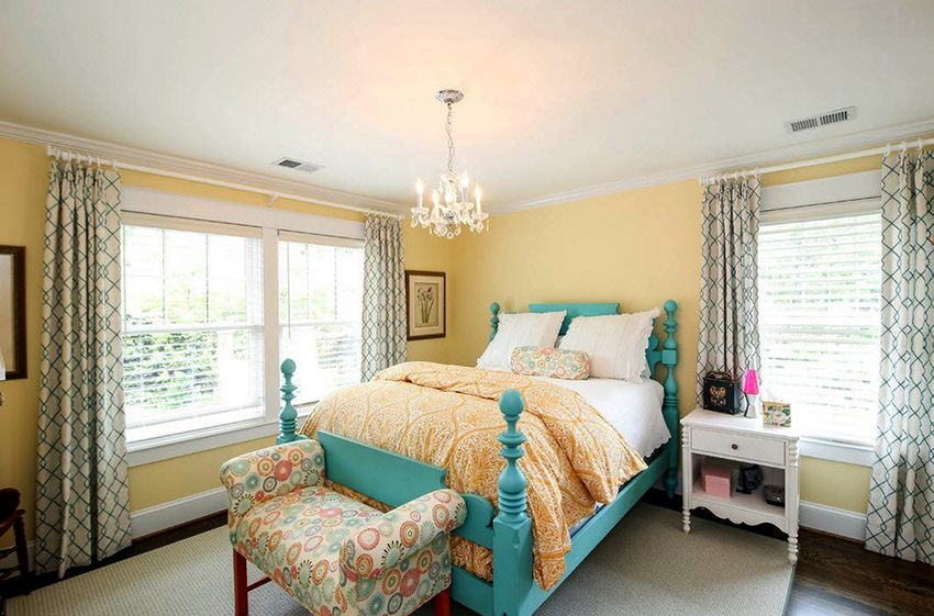 Впрочем, дизайн двух окон на разных стенах не обязательно должен быть одинаковым. Главное, придерживаться одной стилистики и подобрать оттенки, подходящие к общей палитре комнаты.