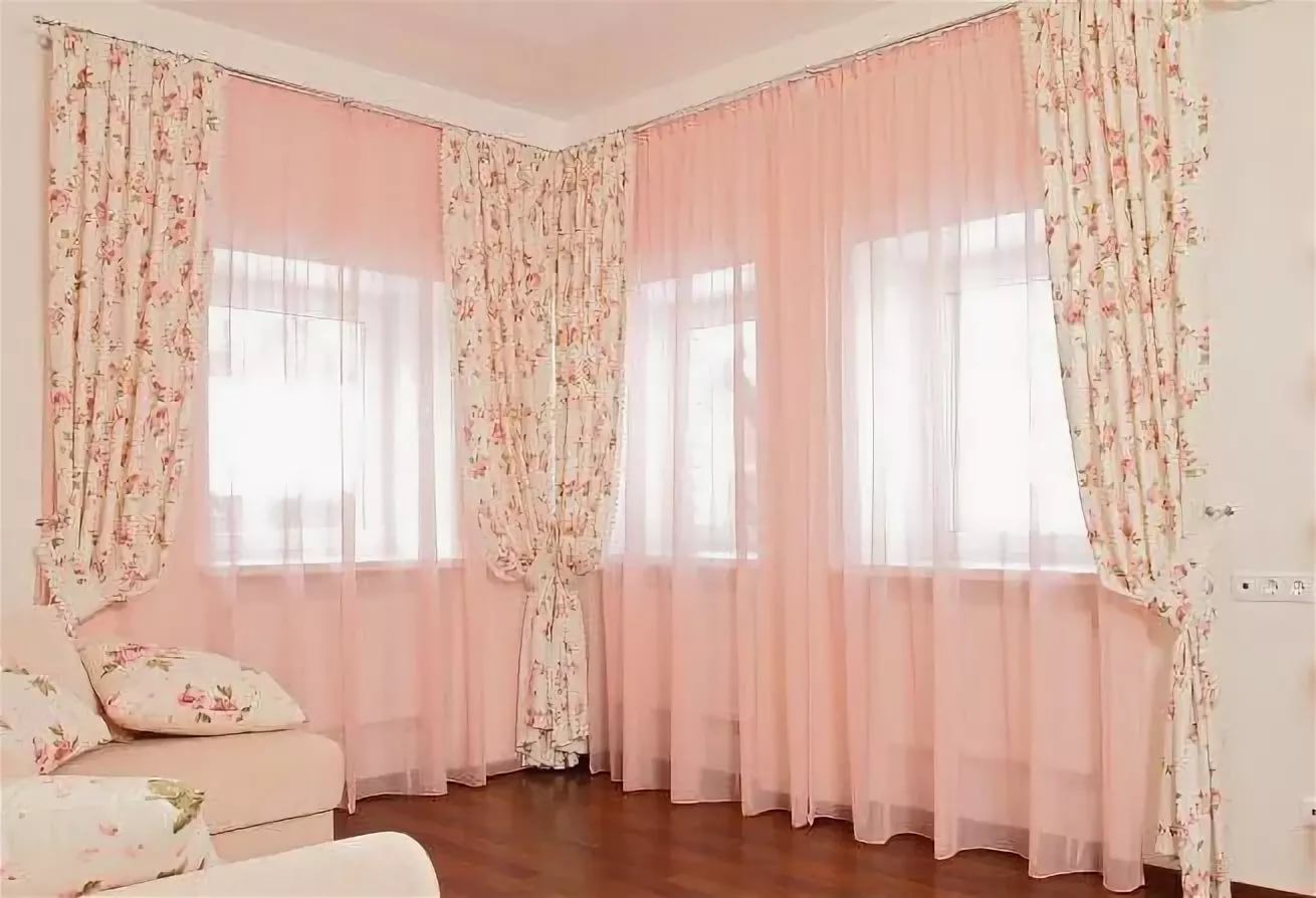 Для угловой комнаты с двумя окнами особенно подойдут такие варианты оформления шторами: