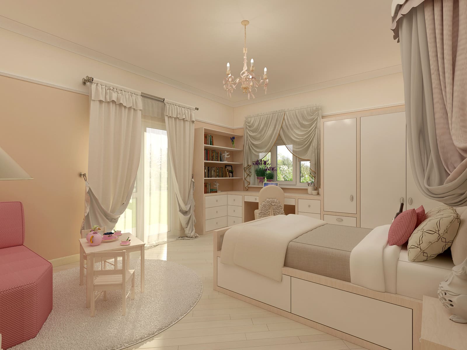 - З рожевим – комбінація бежевого і теплого рожевого розслабляє і створює романтичний настрій. Поєднання підходить для спальні або дитячої кімнати для дівчинки.