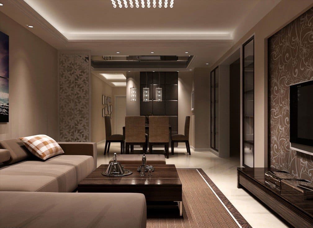 - З коричневим. Це близькі кольори, тому їх поєднання створює приємний, природний контраст. Комбінація підійде для оформлення вітальні чи спальні. За допомогою цих відтінків легко імітувати природні фактури – дерево, цеглу, шкіру.