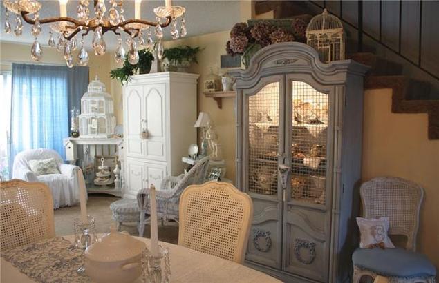 Несмотря на кажущуюся небрежность, мебель и аксессуары подбираются очень тщательно. При этом шебби-шик – очень эклектичный стиль. Он легко сочетает классическую мебель разных исторических эпох с плетеными панно, оборочками на занавесках и керамикой.