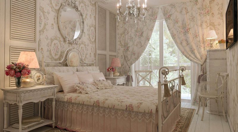 Философия стиля – уважение к времени и любовь к красивым вещам. В палитре, характерной для шебби-шик преобладают светлые оттенки – белый, цвет слоновой кости, нежно-розовый, голубой. Это очень мягкий, успокаивающий интерьер без ярких цветов и контрастов. Линии плавные, округлые. Особенно красивы и романтичны интерьеры спальни в стиле шебби-шик.
