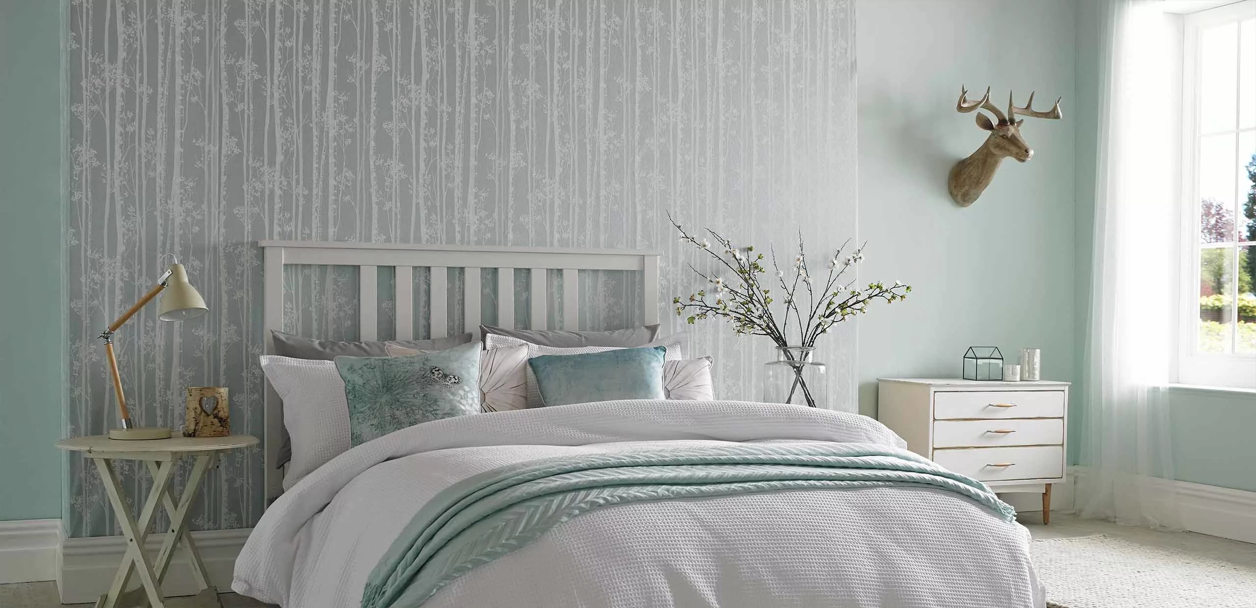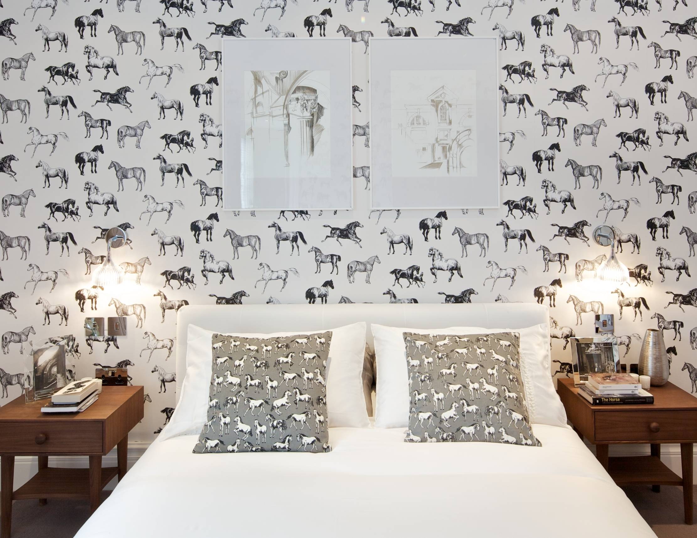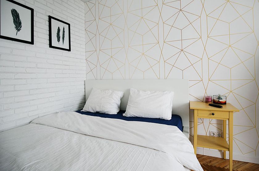 Обои с монохромным рисунком отлично ведут себя на акцентной стене в спальне или детской – например, за изголовьем кровати. В гостиной ими можно оформить пространство за телевизором или диваном.