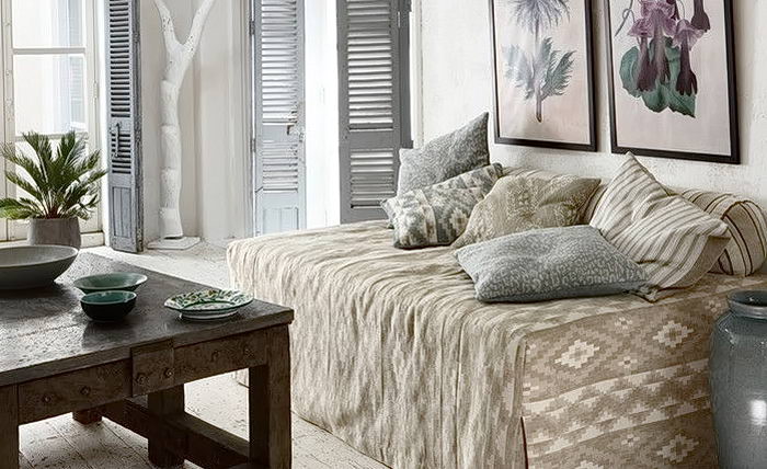 Выбирайте прочные материалы с плотным переплетением. В частности, дизайнеры рекомендуют присмотреться ко льну и шерсти. Палитра – нейтральная, которая не надоест спустя сезон. Например, в бежевых, светло-серых, коричневых оттенках.