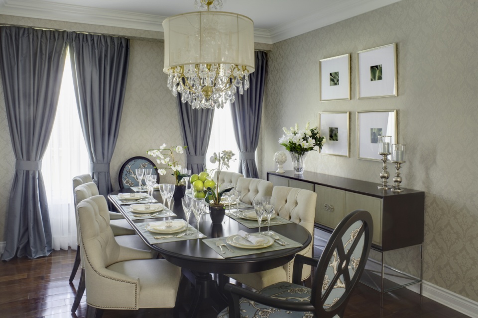Шторы для классического интерьера должны быть длинными. Выбирайте изделия в пол или даже чуть длиннее. Именно такие модели, особенно из плотных тканей, смотрятся роскошнее и богаче всего.
