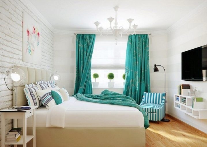 Удачнее всего будут смотреться однотонные шторы, но подойдет и ткань с ненавязчивым графическим орнаментом, особенно на фоне белого или монохромного интерьера. Оттенок или узор на шторе можно повторить в остальном текстиле – например, на диванных подушках, покрывале или ковре.