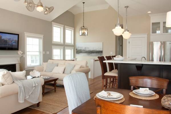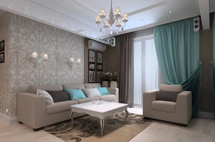 - Сочетание бежевого цвета в интерьере с серыми деталями