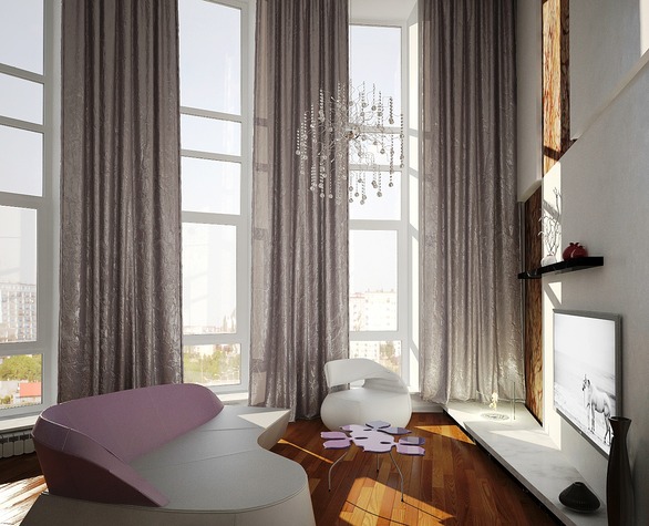 Высокие окна – украшение любого дома. А сложности с выбором штор с лихвой компенсируются красотой и элегантностью интерьера.