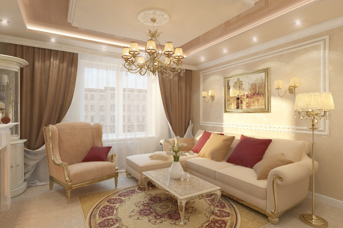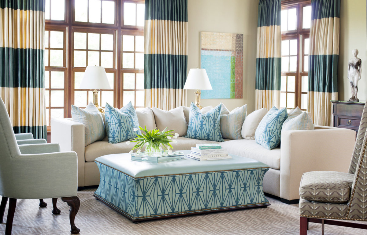 Если общая отделка выполнена в светлых нейтральных оттенках, внесите разнообразие за счет текстиля. Дополните шторы диванными подушками, покрывалом или текстильным настенным панно. При этом не обязательно добиваться точного совпадения, особенно, если ткани узорчатые – достаточно переклички некоторых оттенков.