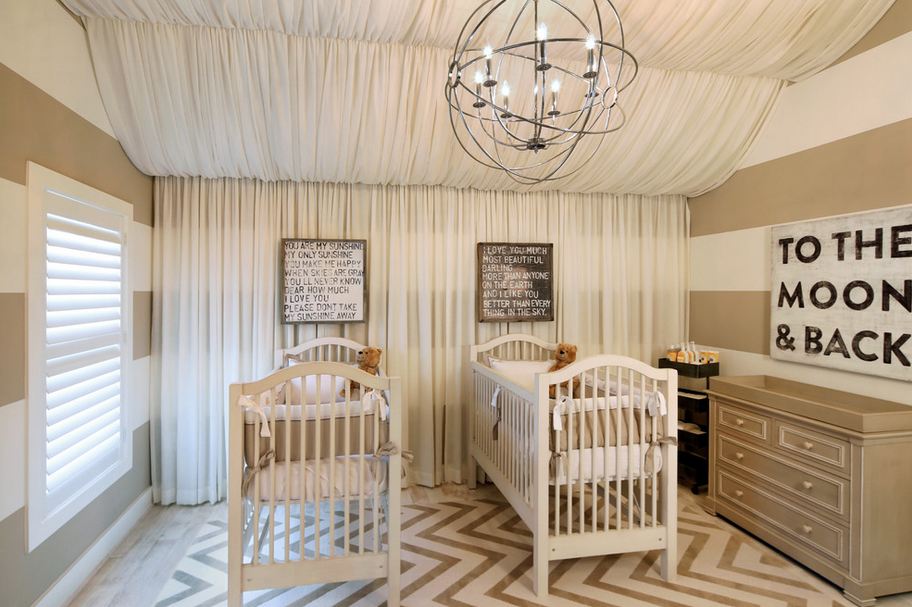 Оформлять тканью можно как всю стену, так и только ее часть, например, нишу или пространство над изголовьем.
