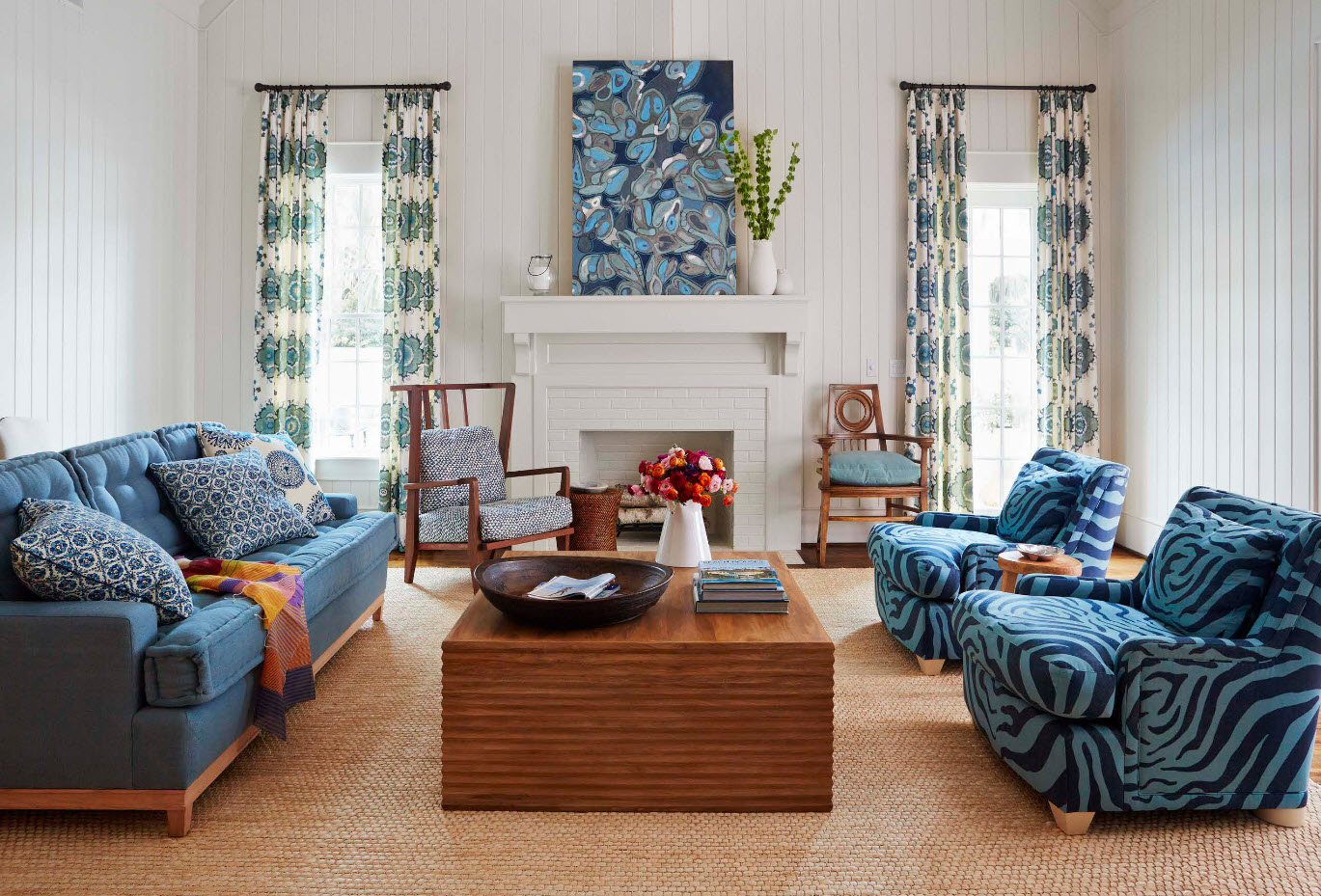 Чтобы добиться точного совпадения, просто сшейте диванные подушки и шторы из одной ткани. А еще лучше – перенесите ту же цветовую гамму и на ковер.