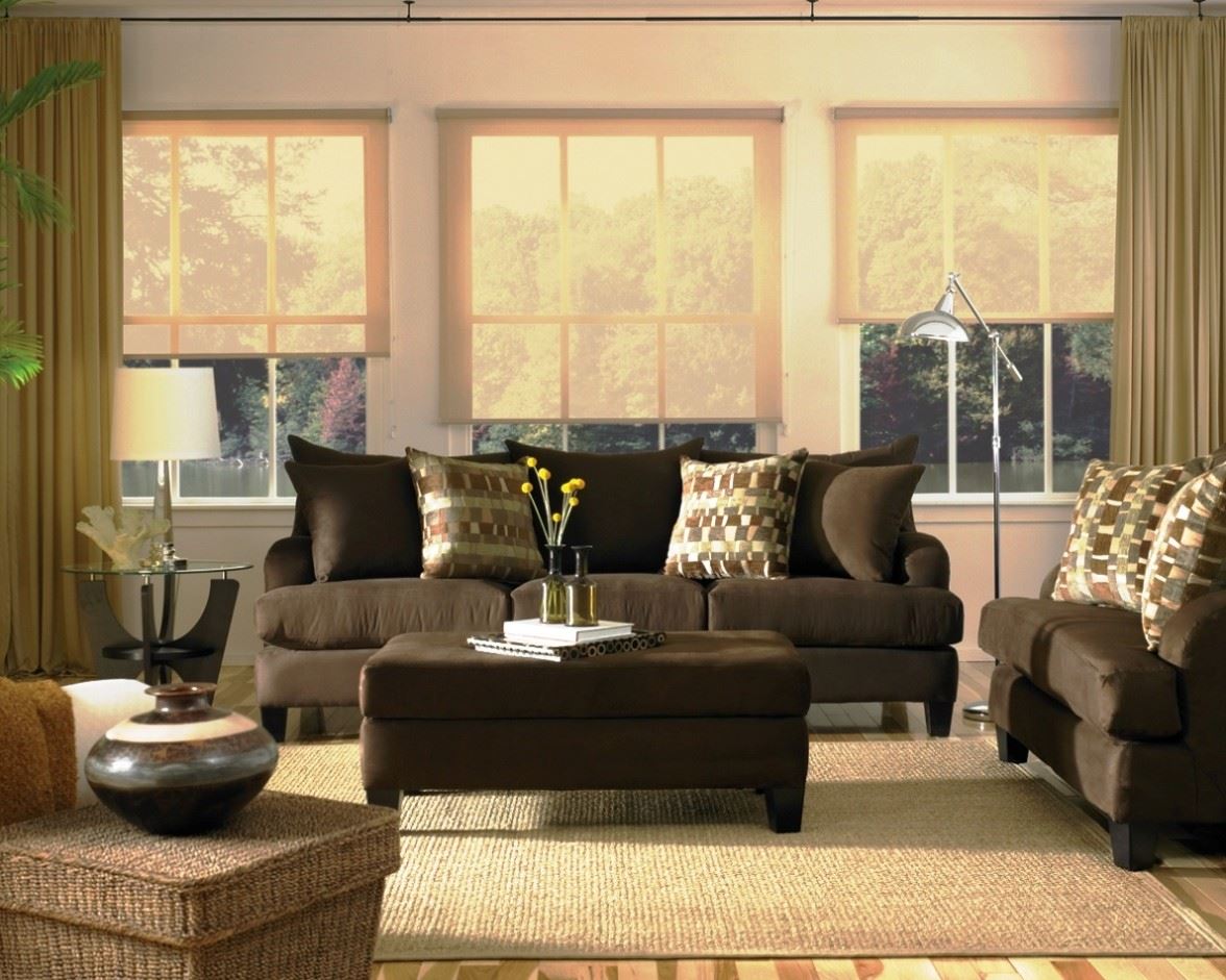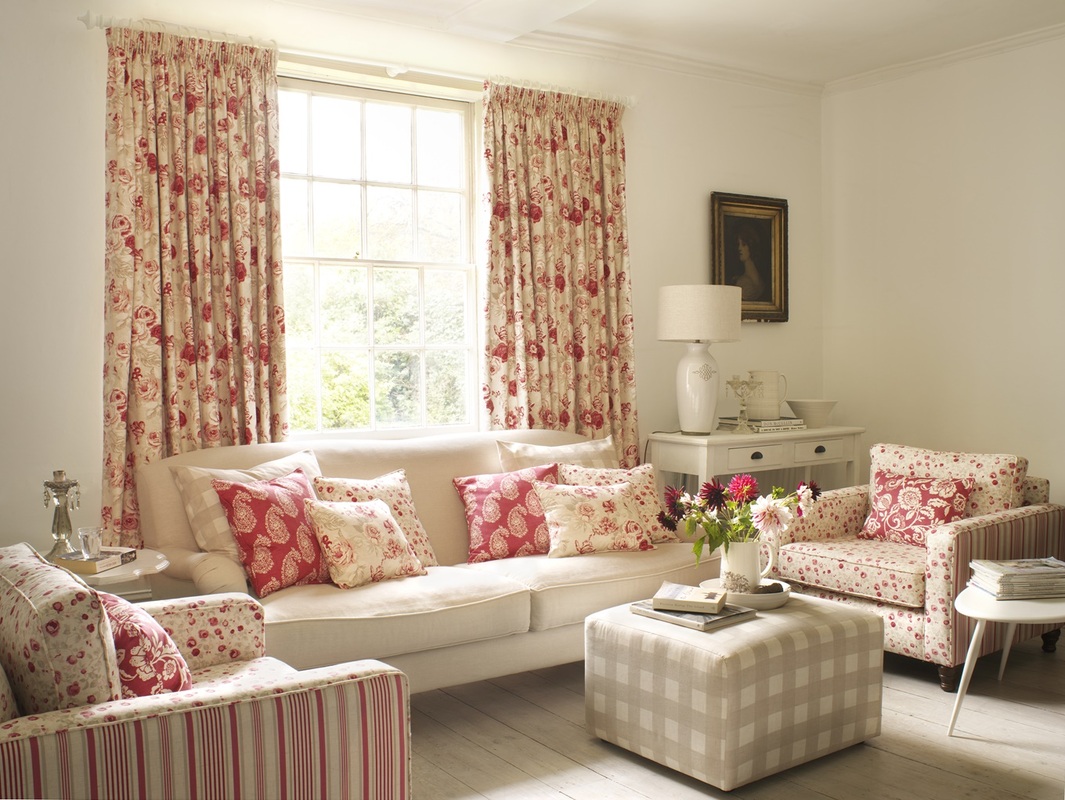 Это классическое сочетание, которое выигрышно смотрится в любых интерьерах. Лучше сочетать шторы не со всей мебелью, а только с одним или двумя предметами, например, креслом. Если же в комнате будет много мягкой мебели с одинаковой обивкой, рекомендуем выбирать неброские узоры, иначе интерьер будет напрягать.
