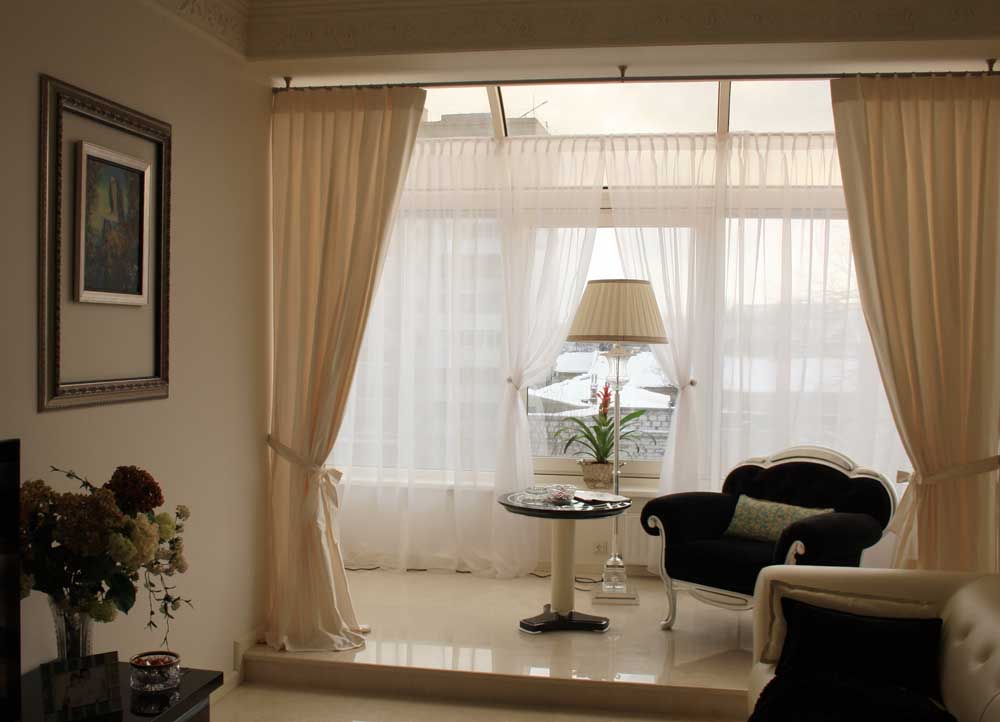 Дизайн балкона со шторами – сценарии размещения занавесок