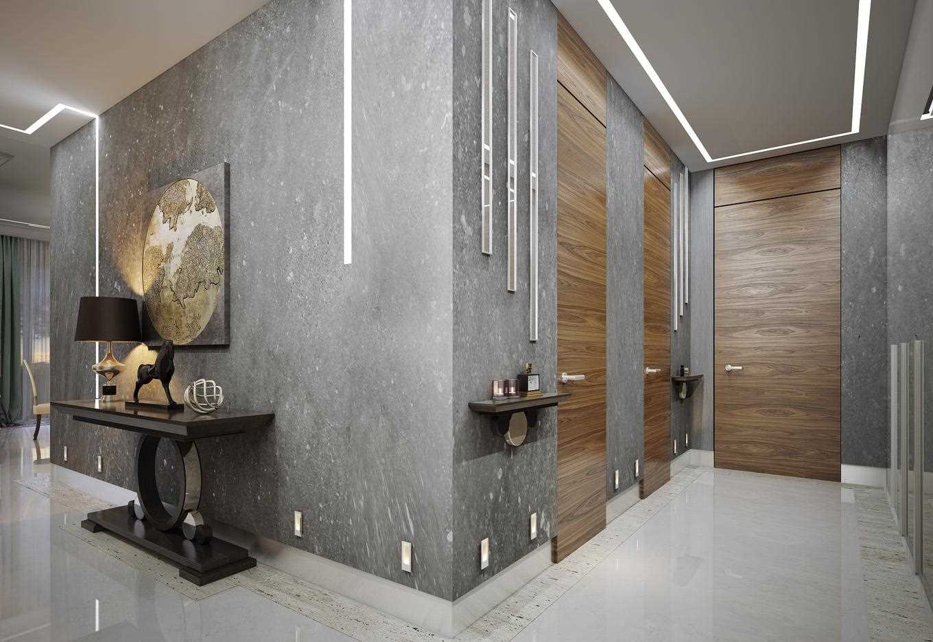 Отделка интерьера декоративной штукатуркой подчеркнет лаконичность стилей минимализм и хай-тек. Выбирайте гладкую сдержанную отделку, без узоров и эффектов. Например, подойдет белая штукатурка или серая под бетон. Еще один вариант – гладкие стены с мелким вкраплением металлов или отделка под травертин.