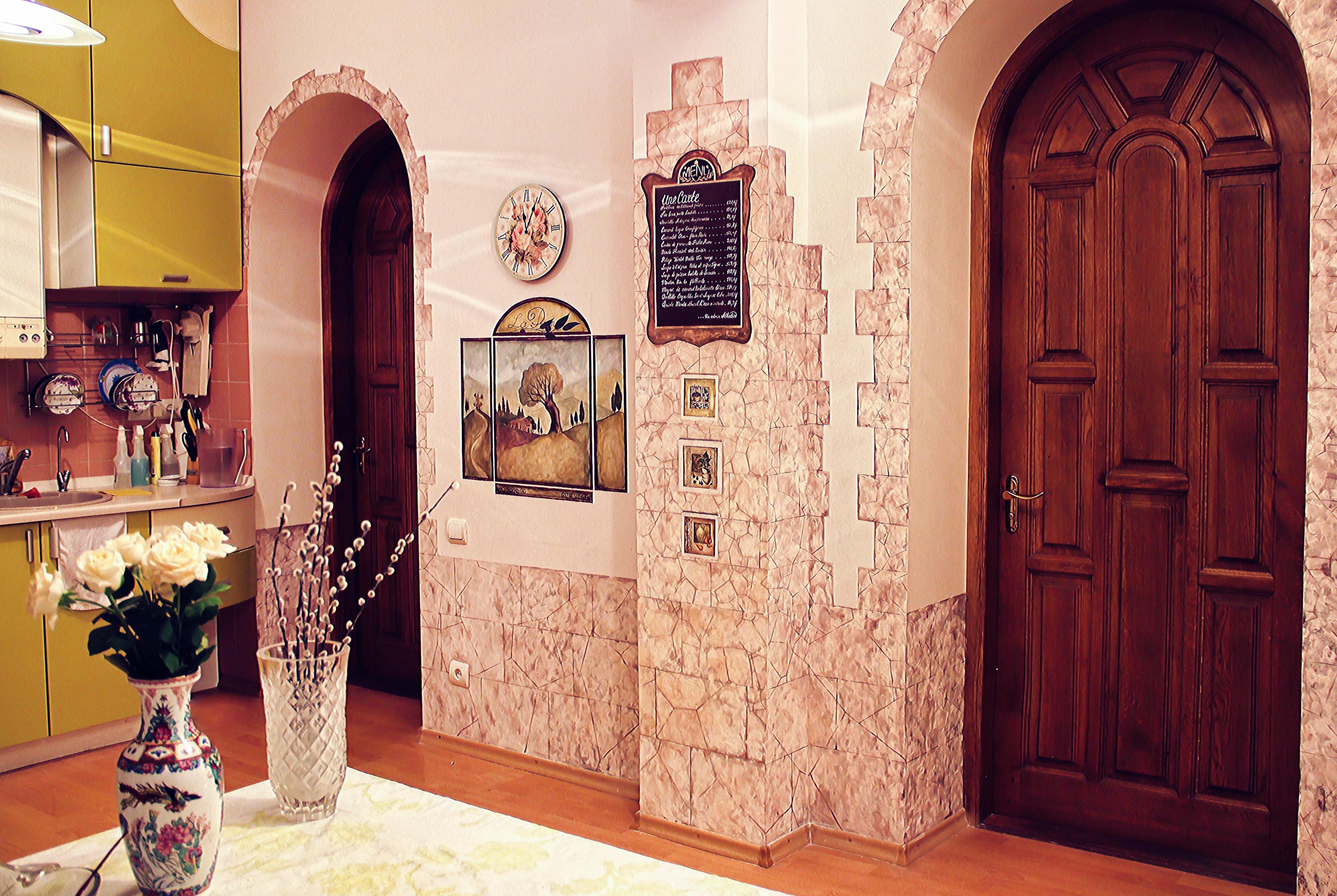 Декоративная отделка стен штукатуркой легко имитирует рельефные природные поверхности. Например, кирпичную кладку или дерево, характерные для экостиля и прованса. Выбирайте для таких интерьеров штукатурку типа Марсельский воск с выраженным рельефом.