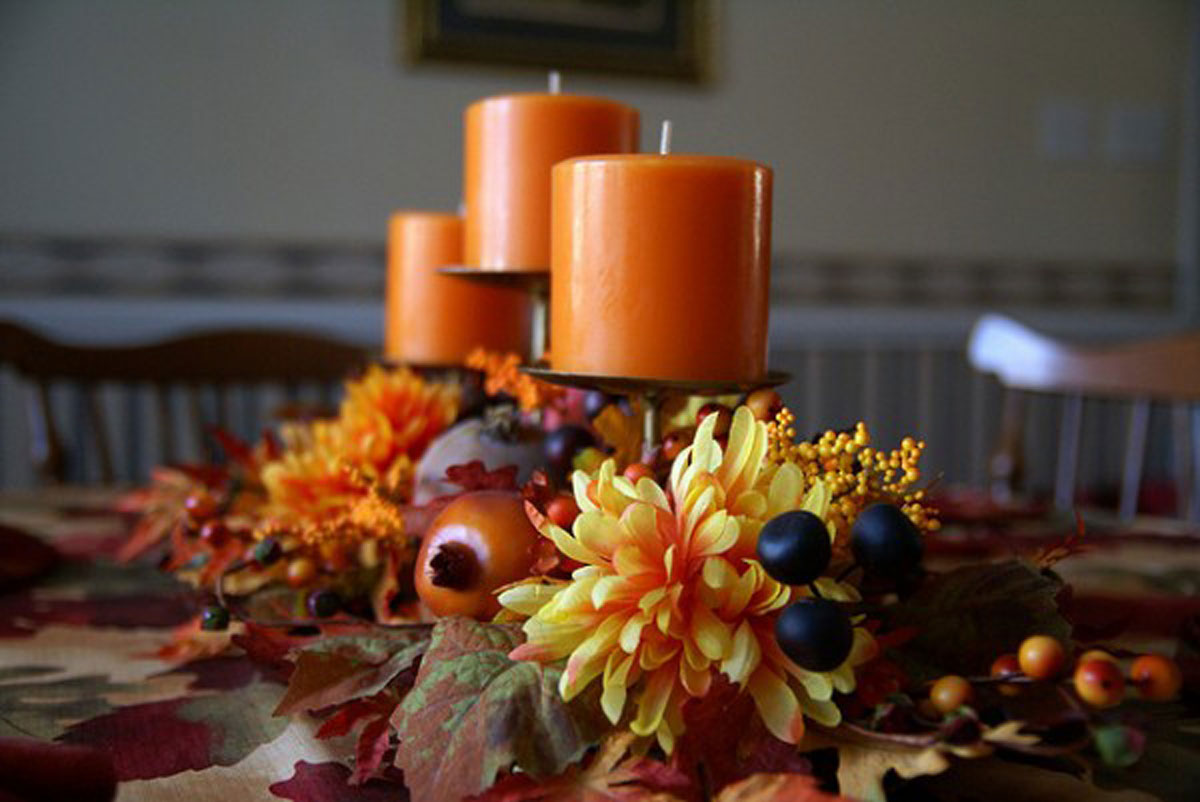 Нужное настроение легко можно создать с помощью природных материалов – дерева, глины, металла (особенно медь и латунь). Если у вас есть дети, смастерите вместе с ними поделку из природных материалов – желудей, веточек, осенних листьев, небольших тыковок. Еще один вариант – букеты осенних цветов. Астры, хризантемы, георгины, розы – подойдут любые цветы, главное, чтобы палитра была выдержана в осенних красках.