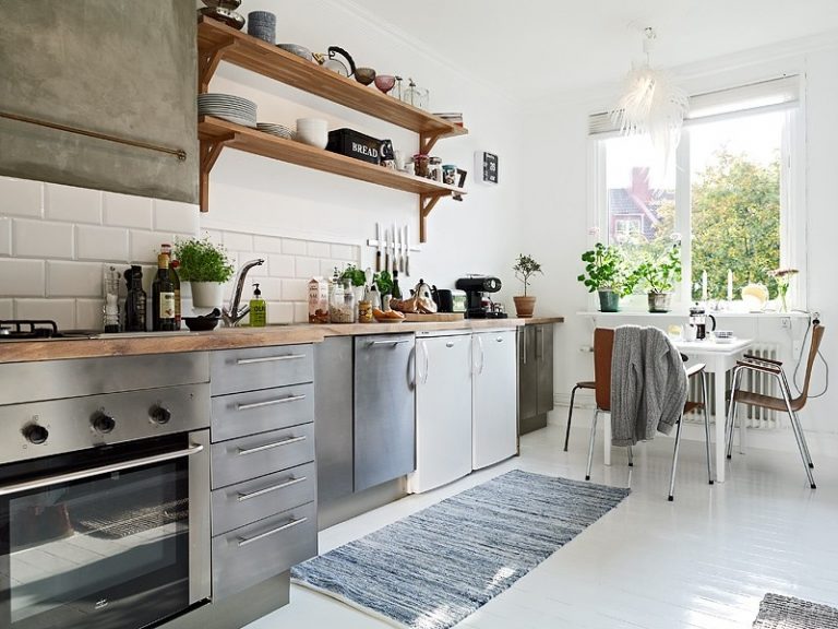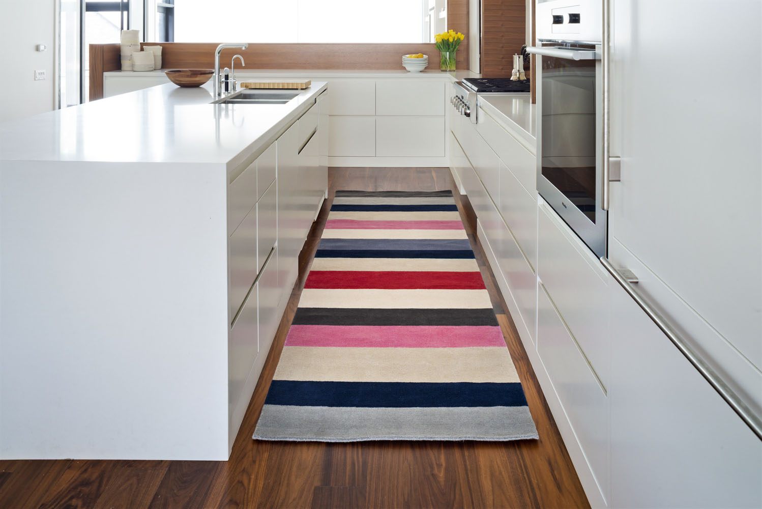 - подчеркивает стилистику. Если кухня оформлена в скандинавском стиле или кантри, небольшая тканая дорожка станет завершающим штрихом интерьера.